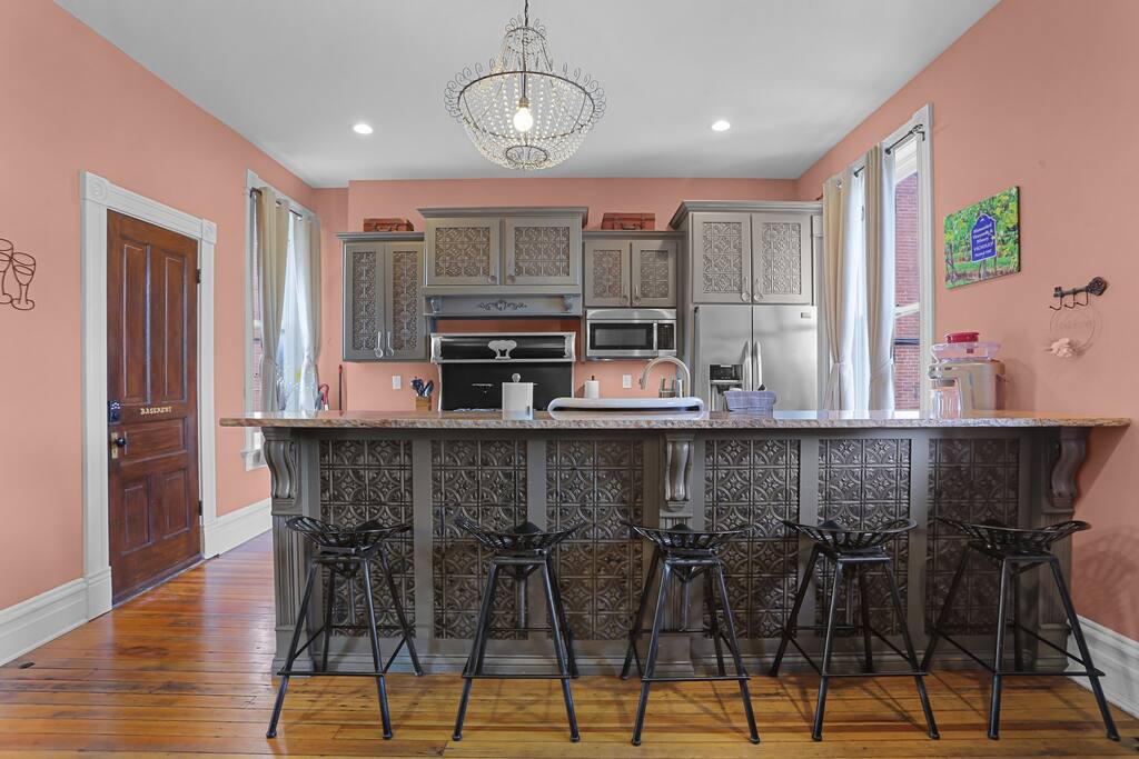 Originally built in 1895, this beautifully restored 5-bedroom home blends rich history with thoughtful updates. Once a family home for over a century and later a veterinary clinic (you’ll be staying where the Studio Suite hosted patients for 50+ years!), the space now welcomes guests seeking a one-of-a-kind getaway. Enter through the grand double doors into an inviting entryway that flows into a spacious living and dining area—perfect for gathering, relaxing, or celebrating. Just beyond is the full kitchen and access to the Studio Suite, a private retreat with its own kitchenette, bathroom, and washer/dryer—ideal for in-laws, couples, or guests seeking extra privacy. Upstairs, you’ll find three bedrooms on the second floor (each with a king-size bed) and a third floor featuring a large open space with two additional king beds, perfect for groups or families. Enjoy a full bathroom on every level, and step outside to unwind in the private hot tub or cool off in the in-ground pool. Whether you're here for a family reunion, girls’ weekend, business retreat, or winery tour, the Brick House of Washington offers space, comfort, and a whole lot of character—all in the heart of Washington, Missouri.
