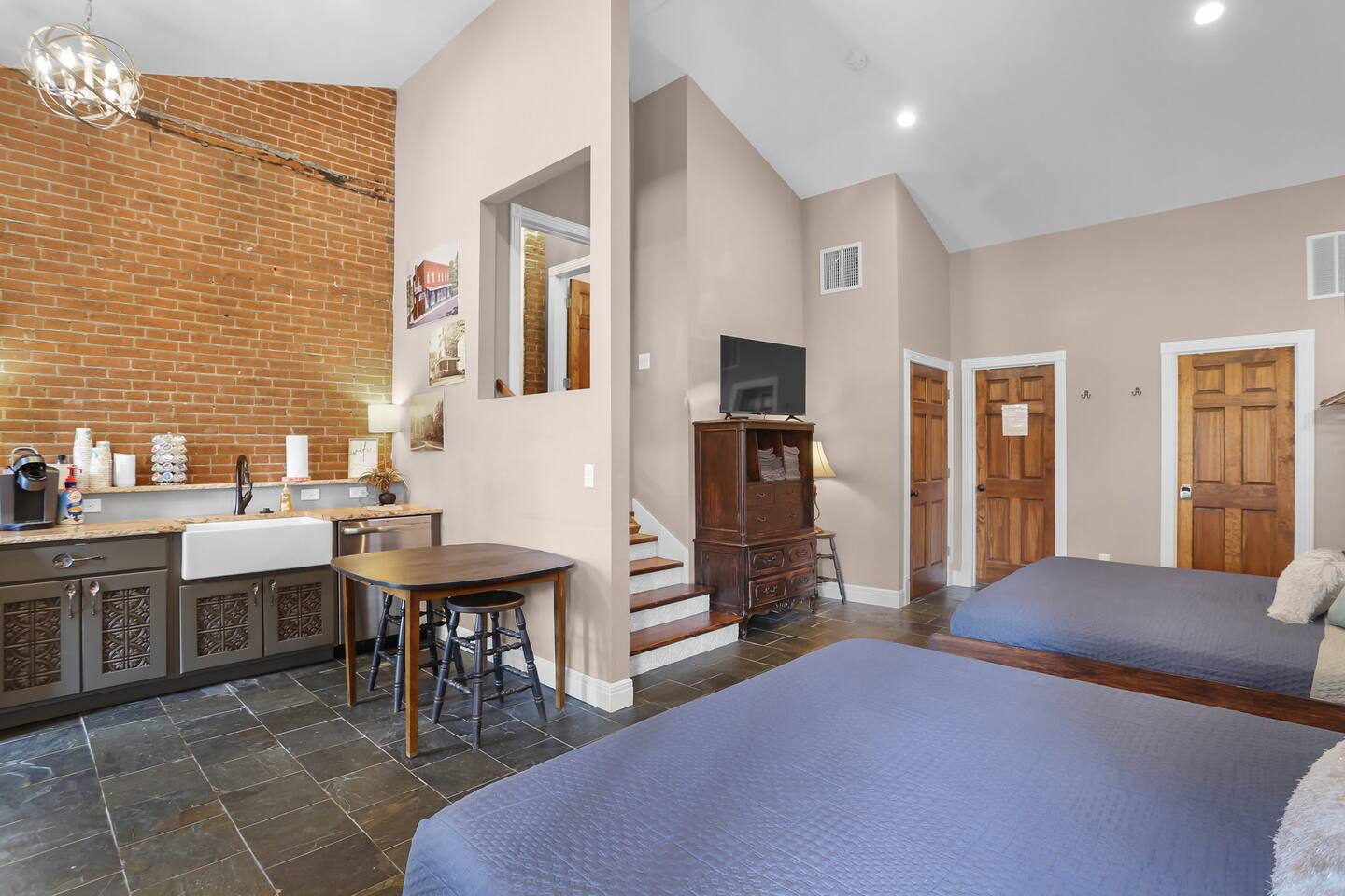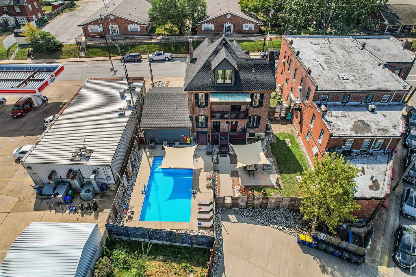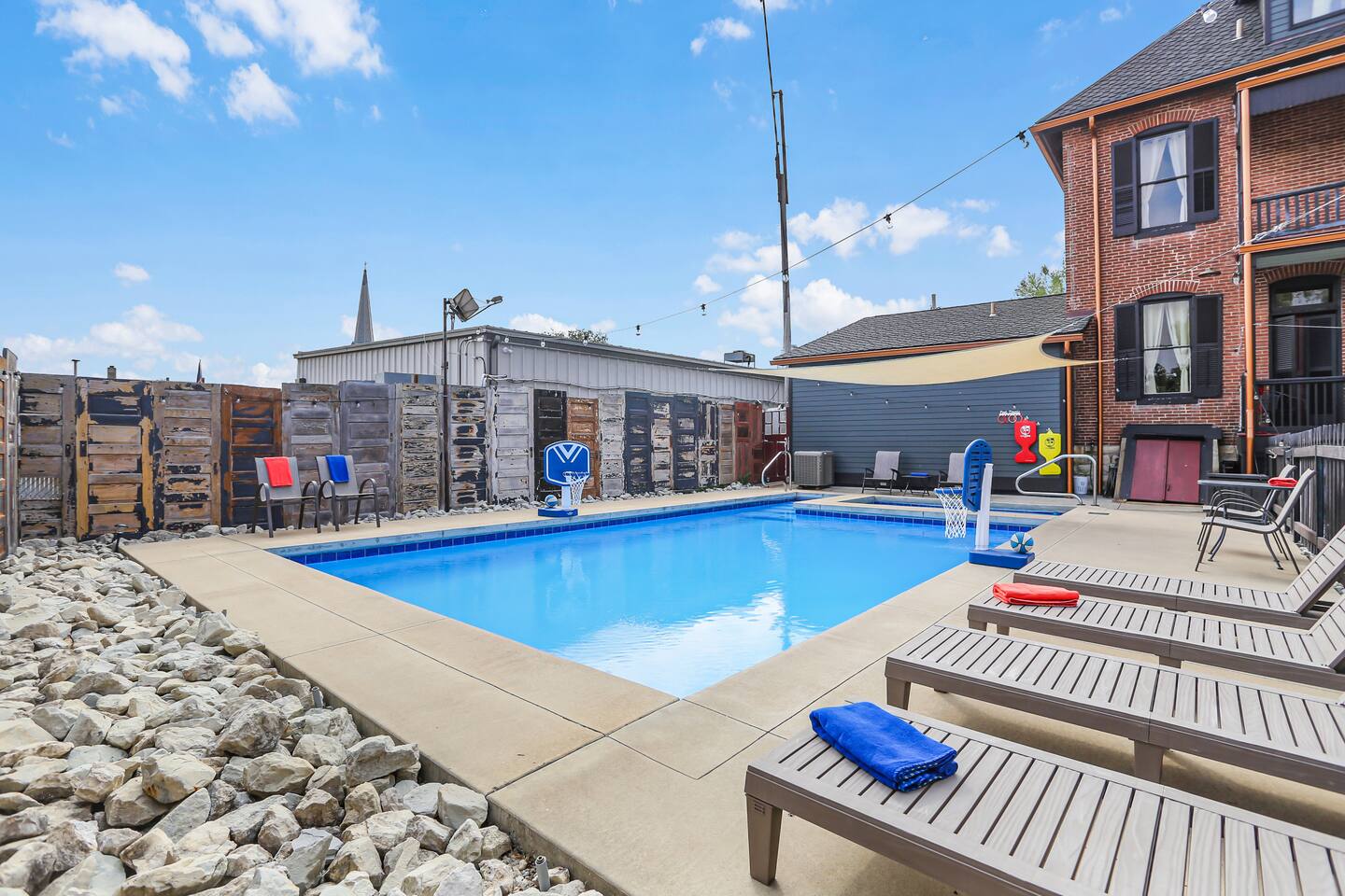 Originally built in 1895, this beautifully restored 5-bedroom home blends rich history with thoughtful updates. Once a family home for over a century and later a veterinary clinic (you’ll be staying where the Studio Suite hosted animal patients for 50+ years!), the space now welcomes guests seeking a one-of-a-kind getaway. Perfect for gathering, relaxing, or celebrating. Just beyond is the full kitchen and access to the Studio Suite, a private retreat with its own kitchenette, bathroom, and washer/dryer—ideal for in-laws, couples, or guests seeking extra privacy. Upstairs, you’ll find three bedrooms on the second floor (each with a king-size bed) and a third floor featuring a large open space with two additional king beds, perfect for groups or families. Enjoy a full bathroom on every level, and step outside to unwind in the private hot tub or cool off in the in-ground pool. Whether you're here for a family reunion, girls’ weekend, business retreat, or winery tour, the Brick House of Washington offers space, comfort, and a whole lot of character—all in the heart of Washington, Missouri.