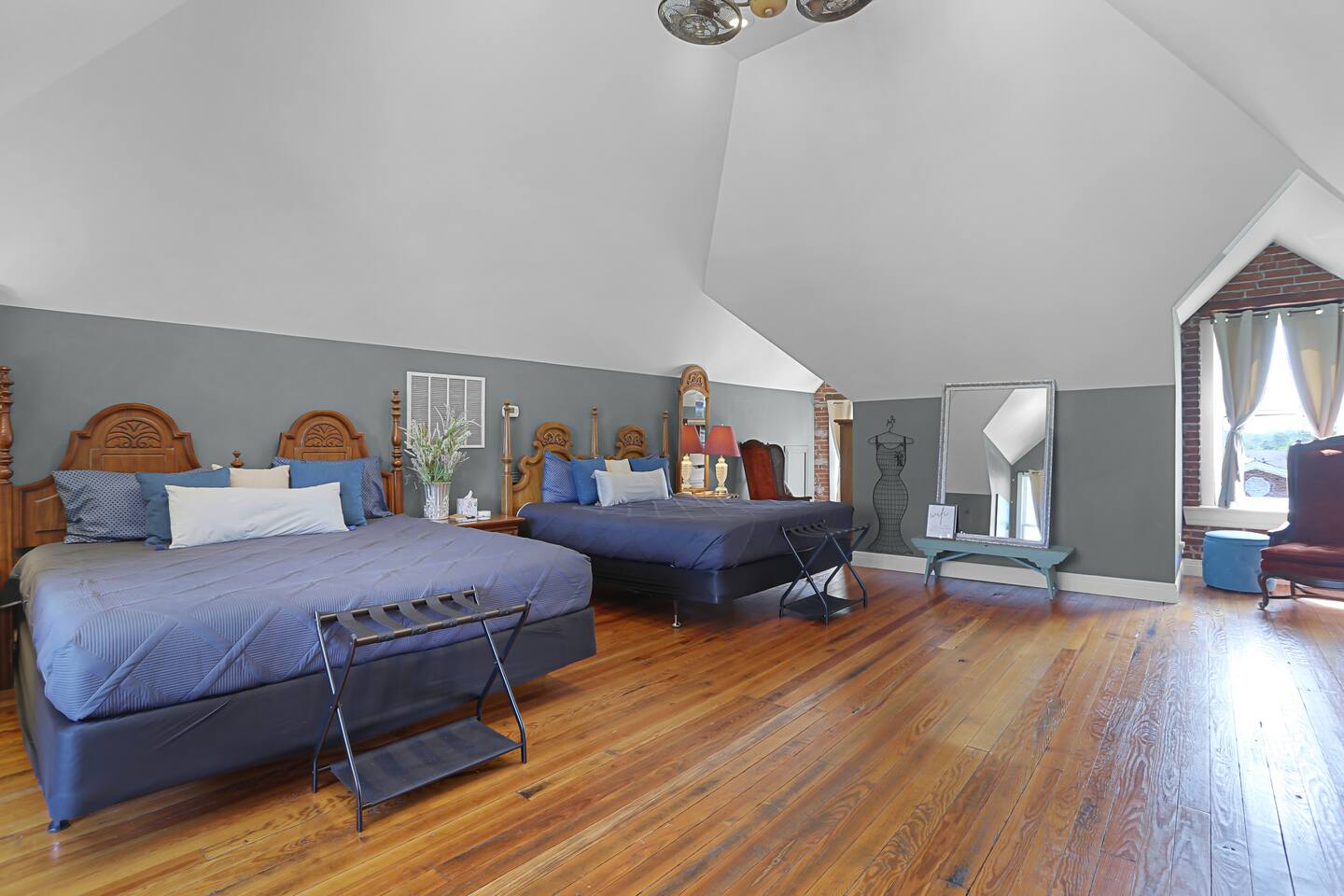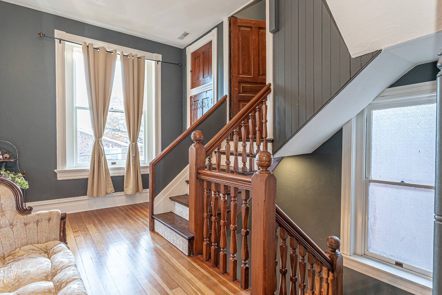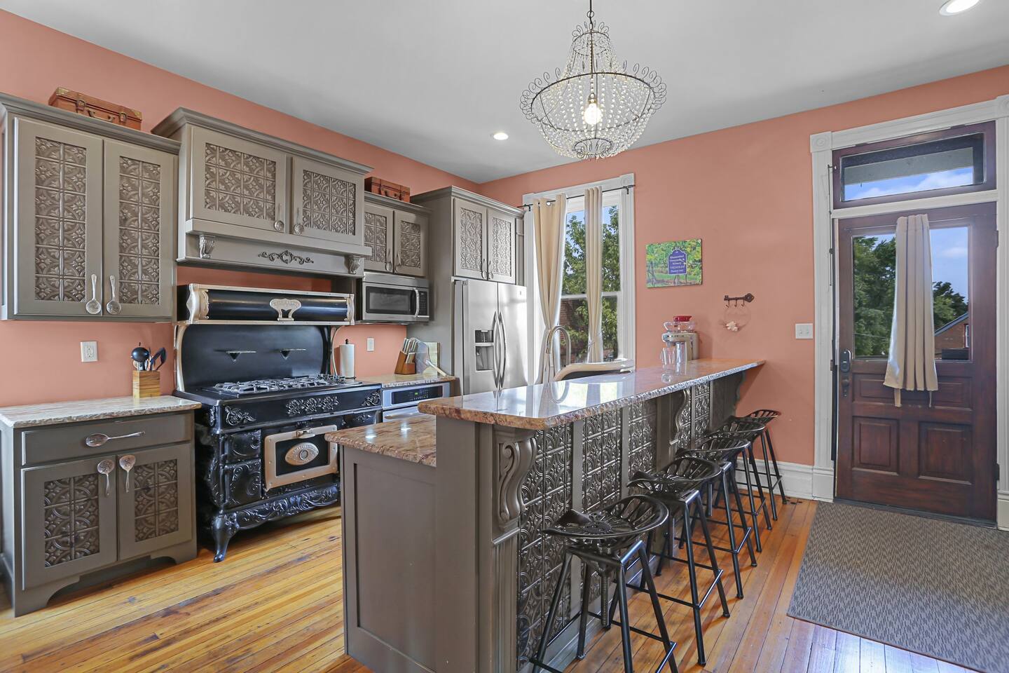 Originally built in 1895, this beautifully restored 5-bedroom home blends rich history with thoughtful updates. Once a family home for over a century and later a veterinary clinic (you’ll be staying where the Studio Suite hosted animal patients for 50+ years!), the space now welcomes guests seeking a one-of-a-kind getaway. Perfect for gathering, relaxing, or celebrating. Just beyond is the full kitchen and access to the Studio Suite, a private retreat with its own kitchenette, bathroom, and washer/dryer—ideal for in-laws, couples, or guests seeking extra privacy. Upstairs, you’ll find three bedrooms on the second floor (each with a king-size bed) and a third floor featuring a large open space with two additional king beds, perfect for groups or families. Enjoy a full bathroom on every level, and step outside to unwind in the private hot tub or cool off in the in-ground pool. Whether you're here for a family reunion, girls’ weekend, business retreat, or winery tour, the Brick House of Washington offers space, comfort, and a whole lot of character—all in the heart of Washington, Missouri.